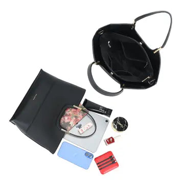 Valerie è la borsa che incarna il perfetto equilibrio tra sofisticatezza e funzionalità. Con la sua struttura elegante e i contrasti materici raffinati, cattura lo sguardo con dettagli dorati che esaltano un design contemporaneo e chic. Spaziosa e intelligentemente organizzata, ospita documenti, tablet e accessori senza sacrificare l'estetica. I manici rigidi e la tracolla rimovibile ti offrono la libertà di indossarla come preferisci—a mano per un'occasione speciale o a spalla per la praticità quotidiana. Una shopper versatile e distinta che trasforma ogni momento in un'affermazione di stile consapevole.
